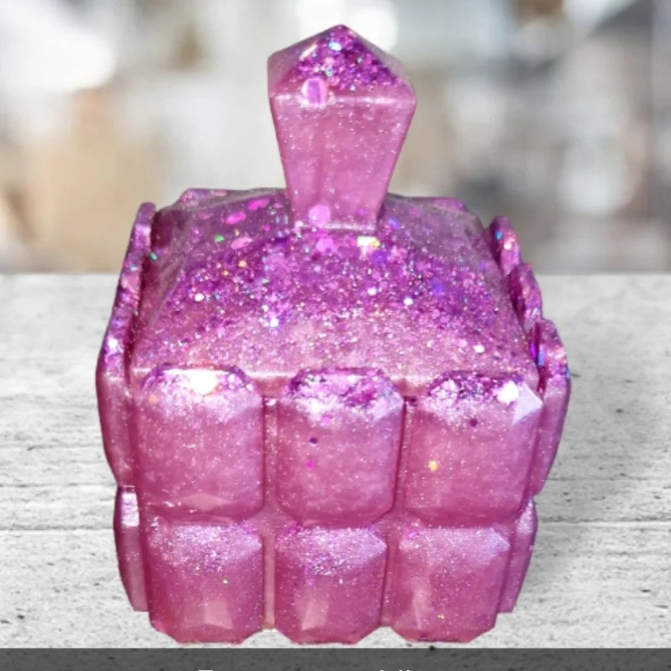 Cette boîte à bijoux en résine, réalisée entièrement à la main, allie artisanat et élégance.